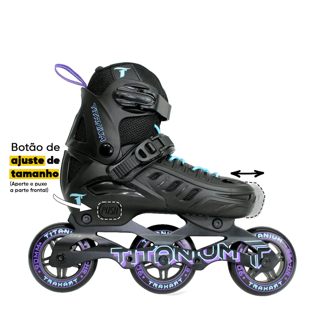 PATINS TITANIUM TRAXART INFANTIL REGULAVEL 90MM/85A ABEC 7