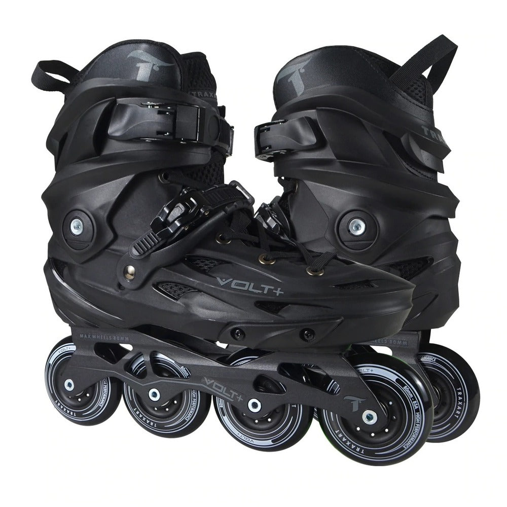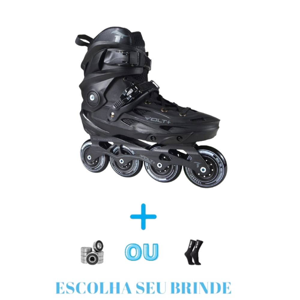 O Patins Freestyle Urban Traxart Volt + 2.0 Preto é a versão atualizada do patins Volt + e agora nessa cor lançamento. Esse modelo conta com fivela de precisão no peito do pé e rodas SHR. Modelo da linha Freestyle Urban, é uma ótima opção para quem procura um patins que desenvolve bem na prática de urban, saltos, slalom, e também para passeio. Suporta até 120kg.
